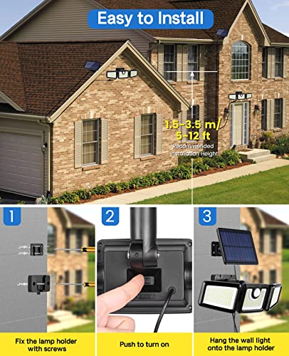 - 【312 LED Solar Security Light】 KIBTOY outdoor solar lights use a 5.5V highly efficient and larger monocrystalline silicon solar panel, the conversion rate up to 23%. Equipped with bright 312 LED beads and 3 adjustable head that can provide 1000LM brightness lighting at night around your home or any place as you need.