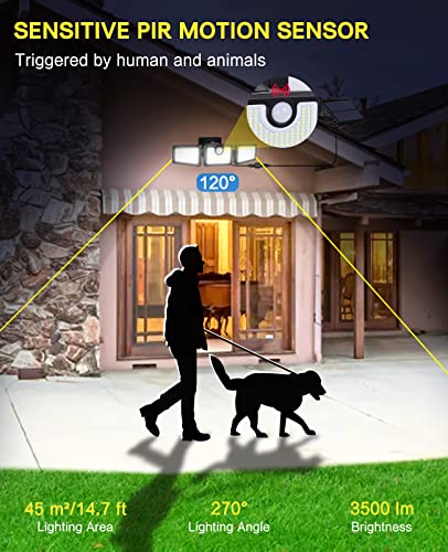 - 【Sensitive PIR motion sensor】The solar outdoor light turns off automatically and charges during the day, when it detects your movement at night, it automatically turns on and lights up for 25-30 seconds. Detect range is 5-8 m with a angle of 120°, offers a range of 270° lighting of 45 m² area at night. The ideal installation height is about 1.8-2.5 meters.