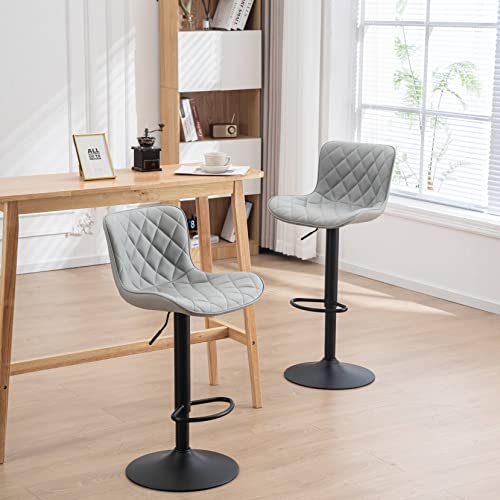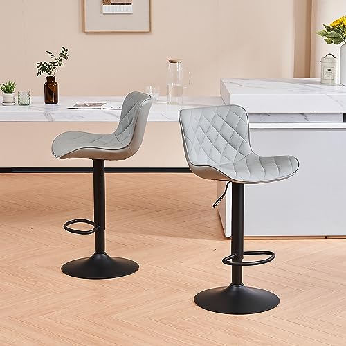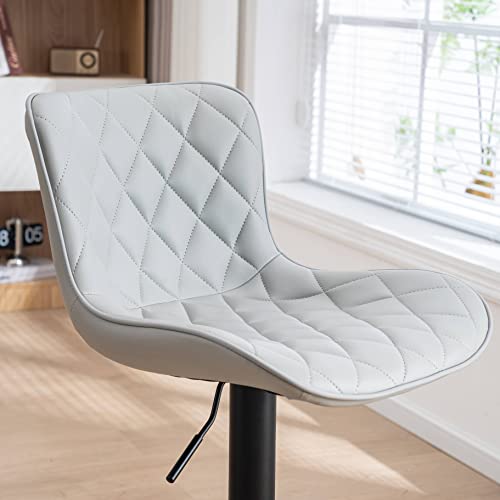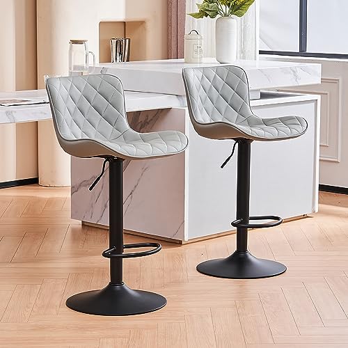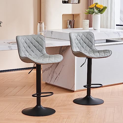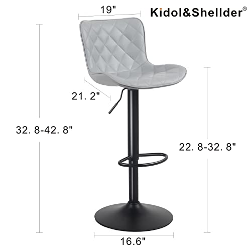 Kidol & Shellder Bar Stools Set of 2 Swivel Barstools Faux Leather Adjustable Soft Cushion High Backrest Counter Stools, Grey, 3-5 Mins to Assemb