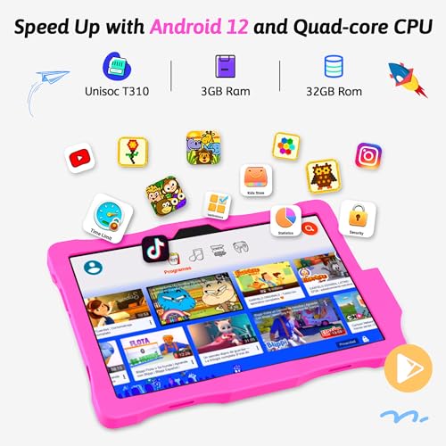 - Kids' Tablet PC with Case and Touchscreen Pen Included- This android 12 kids tablet pc comes with a pink kid-friendly case and a touchscreen pen, which is designed specifically for kids ages 3-12.