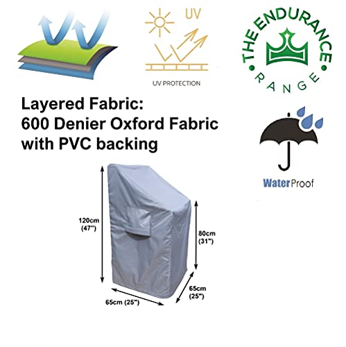 - PREMIUM 'ENDURANCE RANGE' GREY STACKABLE CHAIR COVER-HEAVY DUTY 600D (more durable than 420D and 210D) Oxford Fabric with PVC backing. 100% WATERPROOF. DIMENSIONS - (LxWxH) 65x65x120/80cm.