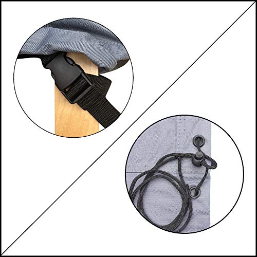 - BREATHABLE and SECURE - Cover has 2 stay open air vents (see pictures) to assist air circulation and stop your tables and chairs attracting mould. Fitted with adjustable drawstring with toggle plus straps with buckles (see pictures) to stop cover blowing off in high wind.
