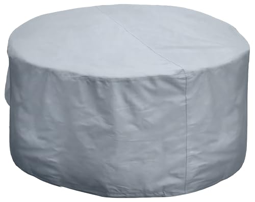 - PREMIUM 'ENDURANCE RANGE' GREY LARGE ROUND PATIO TABLE AND CHAIR SET COVER-HEAVY DUTY 600D (more durable than 420D and 210D) Oxford Fabric with PVC backing. DIMENSIONS - (DxH) 130cmx70cm.