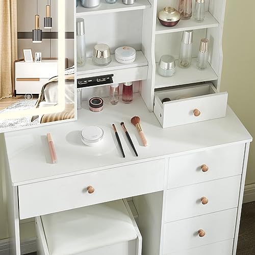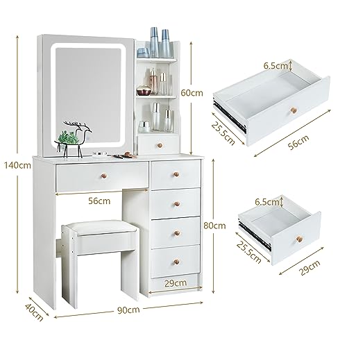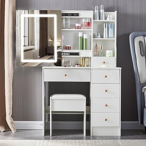- Large Space: The vanity desk has five drawers and six compartments, so you don't have to think about the size of your cosmetics and makeup tools, you have enough space to store them