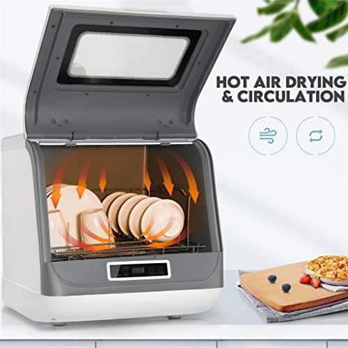 - Convenience, energy saving, water saving: intelligent control, one-button dishwashing, under the intelligent automatic control system and multi-level powerful high-temperature cleaning with high-temperature water up to 70 degrees, no detergent is required, and the cleaning effect is A-level. The desktop type is free of installation, does not take up space, and can be moved at will.