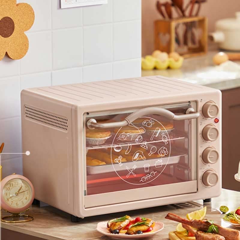 Home Large Appliances KKYKP Electric Oven New Household Multi-functional Small Capacity Mini Oven Independent Temperature Control Electric Baking Oven (Color : Pink, S