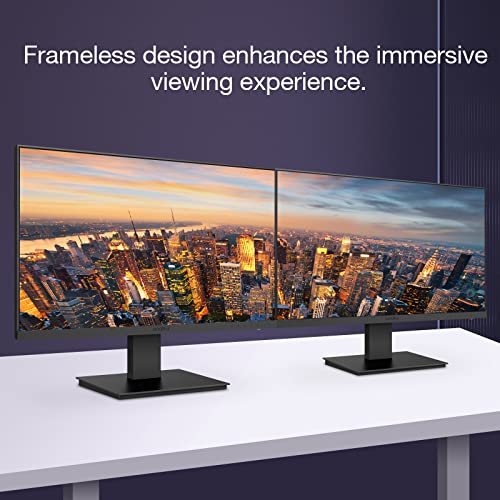 - 【Slim Design】The width of the front and rear of the display is only 46.5mm, and it is compatible with VESA brackets, leaving enough space for your desktop. The three-sided narrow border design allows you to connect multiple screens to enjoy a barrier-free transition between different screens.