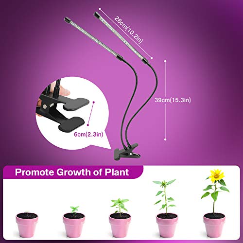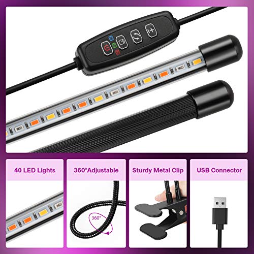 Product Description 3 Light Modes Grow Light for Indoor Plants 3 Timing Modes Grow lights for indoor plants have 3 timing modes (3/9/12 hours) and memory function, ensuring that your plants receive enough amount of lighting. 360° Adjustable Design 360° stainless steel gooseneck, which can be bent and rotated at any Angle, easily adjust the angle distance between light and plant. High Quality LED Beads Grow light with 40 high-quality LED beads provides a full spectrum lighting 460 - 720 nm, high color rendering products, and good heat dissipation.