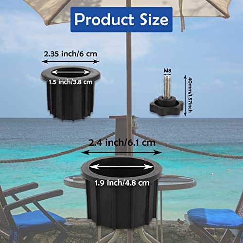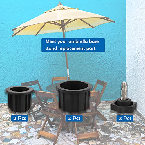 - What will receive, umbrella base stand replacement part include 2 Pcs umbrella hole base with an inner diameter of 1.9 inch, 2 umbrella hole base with an inner diameter of 1.5 inch, 2 pcs umbrella hole base with an inner diameter of 1.3 inch, 2 pcs beveled sleeves, 4 pcs 40mm threaded replacement screws, meet your umbrella base stand replacement part needs.