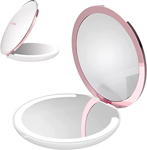 Home Bathroom Furniture Kostlich LED Lighted Compact Makeup Mirror for Travel, Rechargeable, 1X/7X Magnifying – Large 127mm Wide Portable Mirror for Handbag