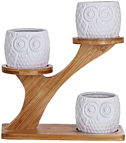 - Owl Succulent Pots with 3 tier bamboo stand is suitable for decorative home and office. Helping you breathe life into roof, patio, shelf, or nook of home, office, apartments, living rooms, bedrooms, balcony, patios, indoor or outdoor garden without taking too much space.