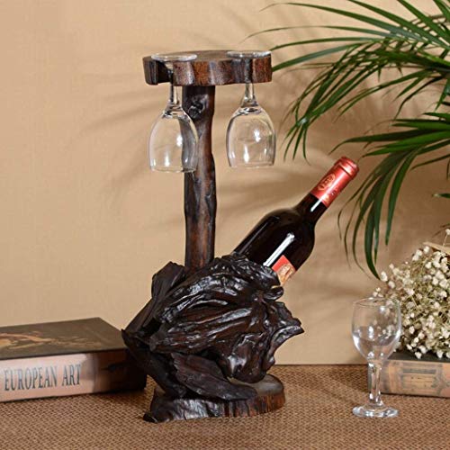 KXDCZ Cup Holder, Wine Rack Decoration, Wine Glass Holder Upside Down Wine Bottle Solid Wood Retro Creative Wine Display Stand Creative