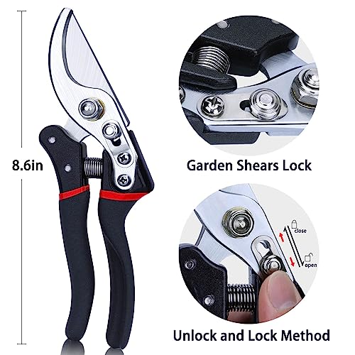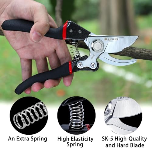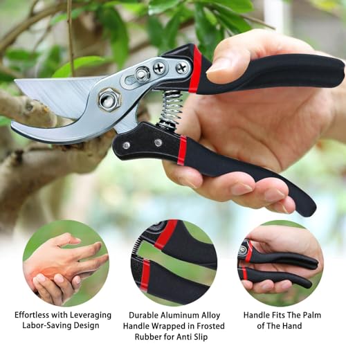 - 【Highly Sharpe Blades】The blades of Gardening Shears adopt professional SK-5 steel is ultra-strong, sharp, rust, and corrosion-resistant. Pruning hand shears saves time and makes pruning easier.