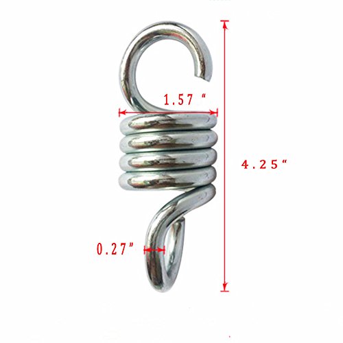 - HEAVY DUTY SPRING HOOK - Rated over 700 lb capacity. The spring helps relieve stress from impacts, and will increase the lifespan of your hammock, in addition your mounting surface