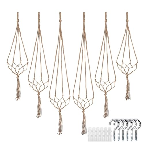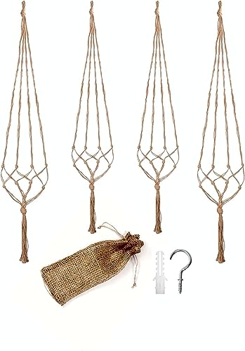 - Its a pack of four plant hangers. The jute macrame plant hangers are suitable for any flower pot, they will stand out in any room can be used indoor and outdoor. It's well-made and sturdy, with a simple, natural look that fits right in with any interior and bohemian look home for indoor outdoor garden office home decorations.
