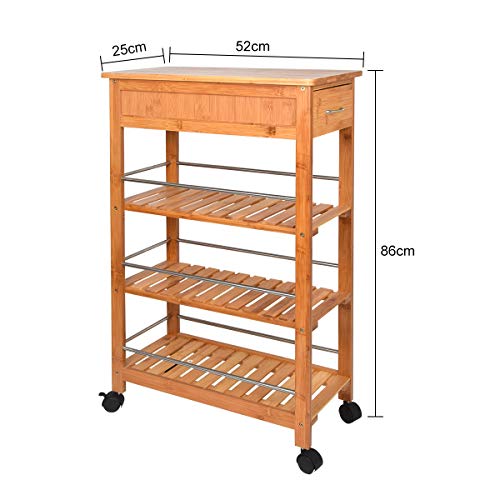 - DURABLE FULLY MATURED BAMBOO: Moso bamboo is naturally more uniform in color than cheaper strains. It cleans up easily with soap and water. Unlike other manufacturers, our bamboo organizers are harvested at full maturity to increase durability and strength. Dimensions: 25 x 52 x 86(H) cm Approx. Load Capacity: 40 kg.