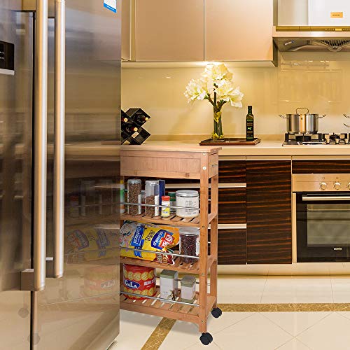 - CREATE ADDITIONAL STORAGE SPACE EASILY – This 4-tiered shelving unit organizer can be used ANYWHERE. The slim storage rack’s 25 cm wide design can fit a lot of narrow space. Ideal for kitchen in homes and small urban apartments.