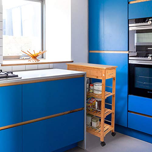 - STORAGE SOLUTION FOR SLIM THIN NARROW SPACES ORGANIZATION – Make life more simple and less cluttered with this convenient slide out shelving unit. Great for canned food, spices, sugar, salt, coffee mugs, kitchen accessories, kitchen pots, kitchen appliances and more. Versatile storage for different kitchen need.