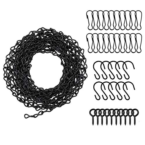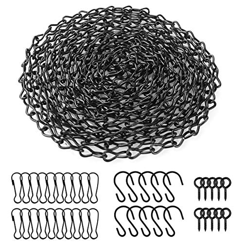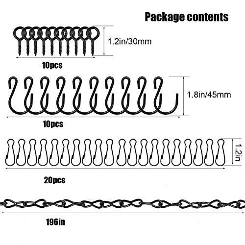 - 【Black Hanging Chian】 Our hanging basket chain is 196 inch(5m) length, with 10 hooks and 20 clips & 10 screw eye hook.You can DIY the length you want,it is very convenient. Simple and elegant design will add a stylish touch and a sense of beauty to your home.