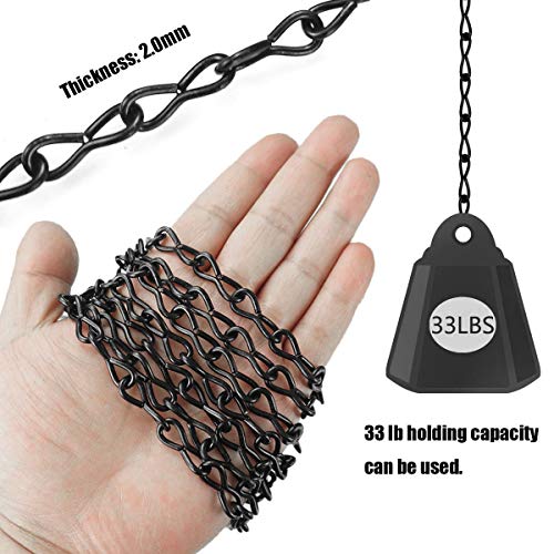- 【High Load Capacity】 Chain capable of holding up to 33 lbs holding capacity.Hanging chian with hooks can be used for bird feeders or planters. Use for hanging your heavy flower baskets or plant pots in the garden. Enough length to meet you need, separated S shape hook can be used to hold your stuff like Keychain or Kitchen Organization Tools.