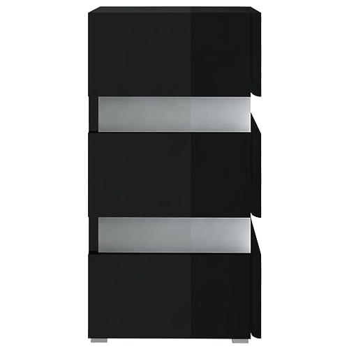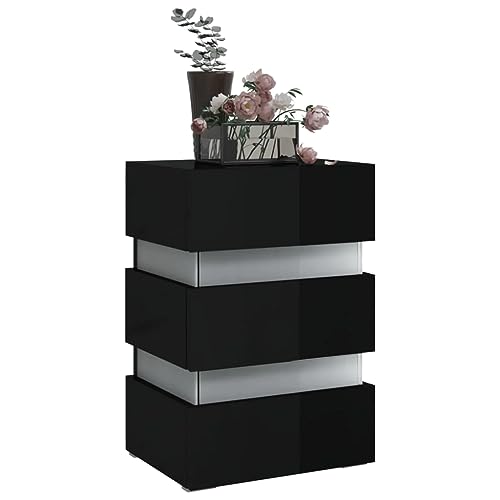 Home Bedroom Furniture LED Bedside Cabinet High Gloss Black 45x35x67 cm Engineered Wood