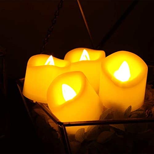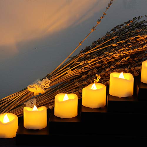 - 【UNIQUE & HIGH QUALITY】:Erosway LED candles flickering with remote and timer come with batteries that continuously working around 200 hours. CE, ROSH approved. Each votive candle with 1.5x1.5 inches and warm yellow light are almost 99% of the real candles.