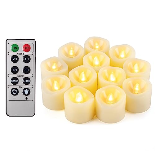 Led Flickering Flameless Votive Tea Lights Candles With Remote Control Battery Operated Set Of 12 / Electric Outdoor Tealights Timer Candle For C