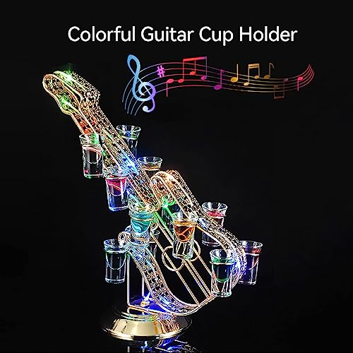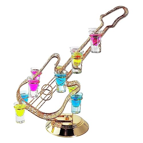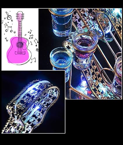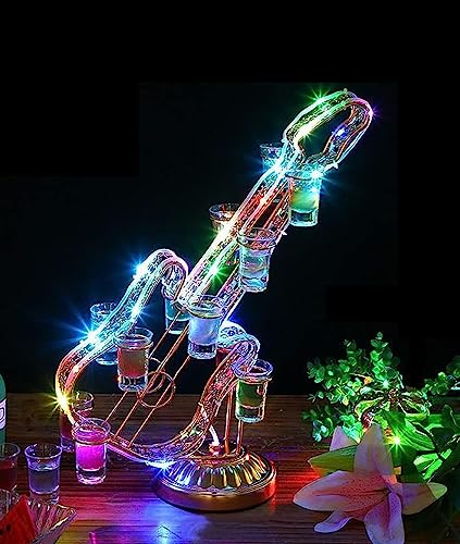 Home Home Bar Furniture LED Neon Champagne Wine Electroplate Metal Cup Holder, Colorful Light, Guitar Shaped Rechargeable Cocktail Shelve, liquor Bottle display rack for