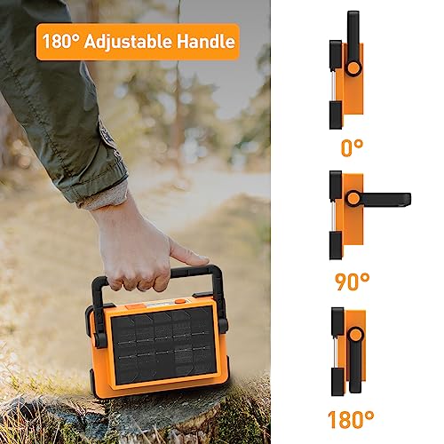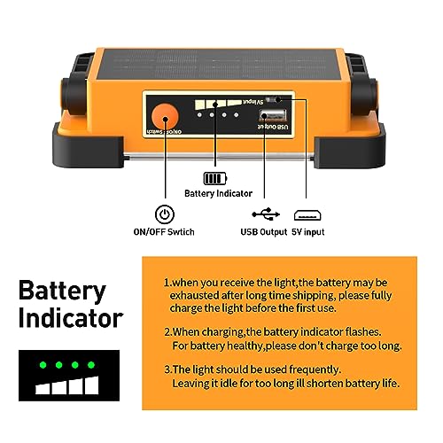 - USB and Solar Rechargeable Work Light:This portable rechargeable work light comes with a USB charging cable with 5V/2A type-c connector, which can be charged via USB or solar power, ensuring continuous use even in remote areas.