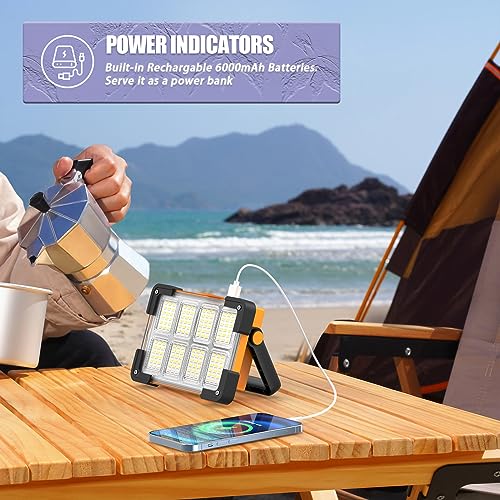 - 4 Lighting Modes:The portable floodlight is built in 144 lamp beads that provides 6,000 lumens of brightness. This work light also offers four different light modes - high, medium, low and SOS strobe - allowing you to choose the perfect illumination for every situation.