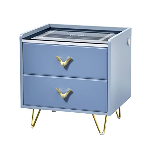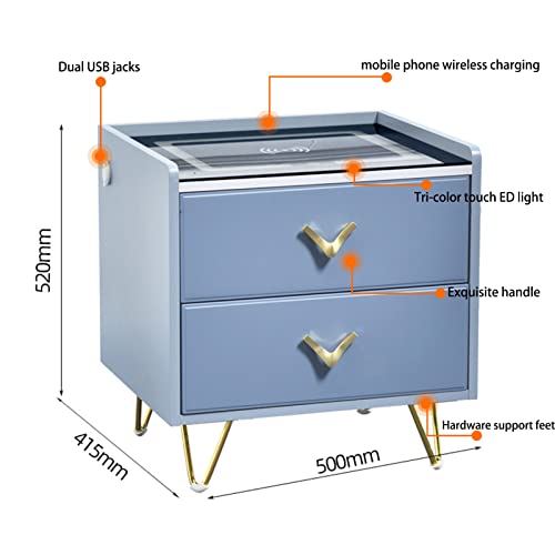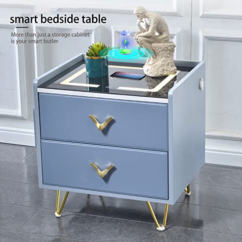 Home Bedroom Furniture LED Smart Nightstand, Bedroom Smart Nightstand, with Wireless Charging & LCD Light & USB, for Bedroom and Living Room (Blue)