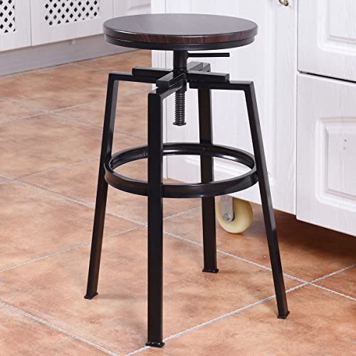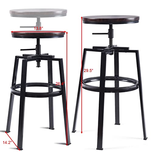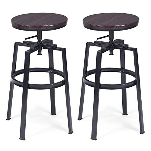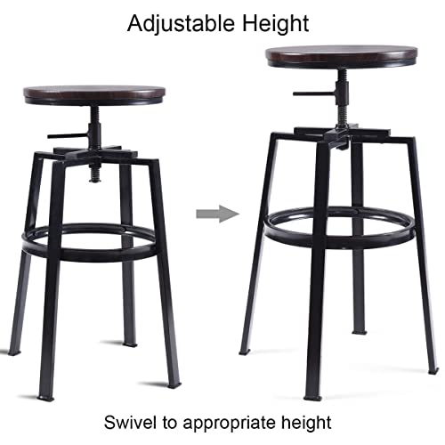 Home Home Bar Furniture LEIGE Set of 2 Vintage Bar Stool Adjustable Wood Metal Design Pub Chairs Industrial