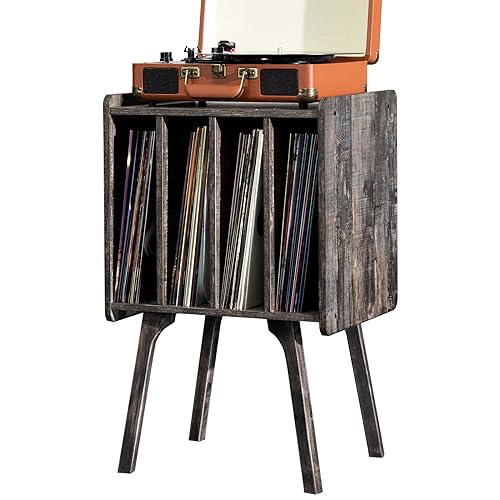 - 【Reliable Materials Create Stable Structure】The strong rustic oak grey record player display holder is made of durable sturdy wooden boards and solid wood legs reinforced by special screws to ensure durability and stability. Thickened tabletop and reinforced table legs not only ensures large weight capacity(75 lb), but also creates a clean-cut silhouette for a touch of visual intrigue. The high-quality materials used in the wooden vinyl record holder escort your safe and healthy life.