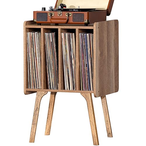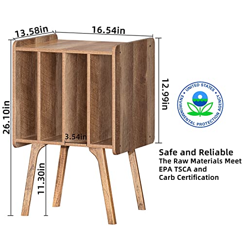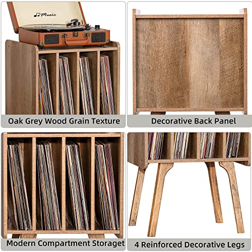 - 【Mid Century Modern Record Player Stand】Transform your living space with retro modern minimalist furniture. This vinyl record storage cabinet holder uses a rustic oak grey natural wood grain design with solid wood decorative legs. It retains the retro wood texture, but without losing the modern pop style. An organic aesthetic, delicate linear detail, and novel flared profile bring iconic style to this mid-century turntable display stand.