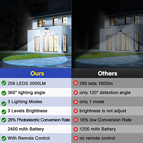 - 🌞【256 LED Solar Wall Light with 6 Rotable Heads】 Enjoy unparalleled performance from 256 super bright LED beads! The 6 rotatable sided design covers an ultra wide angle, providing a 360° lighting angle for the outdoor solar lights.