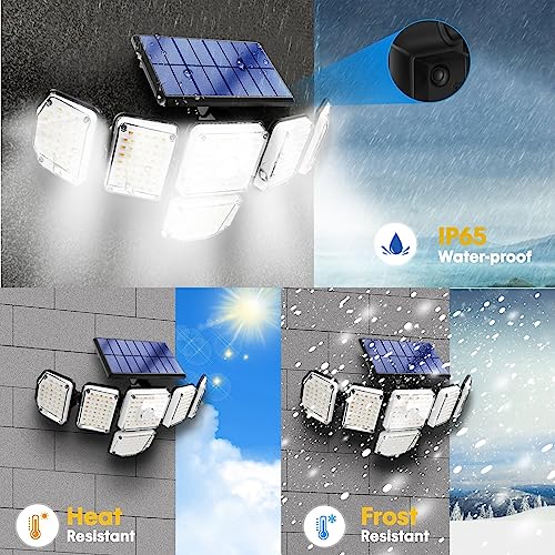 - ☔【IP65 Waterproof & Durable】The solar security lights is made of durable PC+ABS material to ensure that the solar flood light work properly and durably in extreme weather (Rain, Snow, Freeze, etc). Suitable for any yard, garage or gutter.