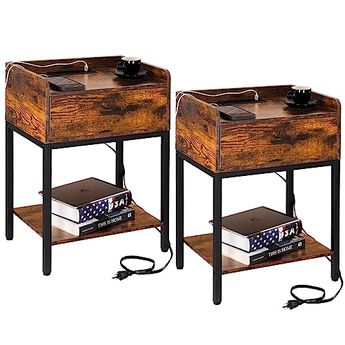 - 【Nightstand with Charging Station】 This 2 Standard Plug Outlets & 2 USB Ports design of this nightstand allows you to charge multiple electronic devices at the same time, such as cell phone, tablet, laptop etc. It makes the power outlet much closer to you and more convenient to use. Curing battery anxiety, it is a good assistant for those who rely heavily on electronic equipments. It's first mission is to save your time and make life more comfortable.