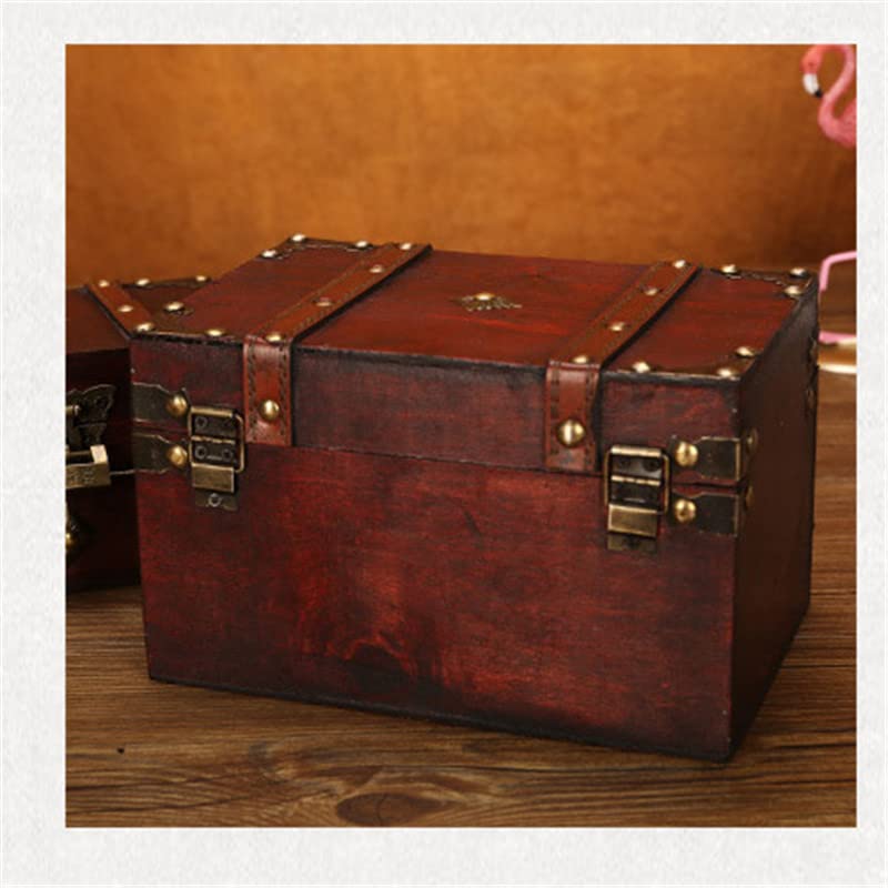 Home Bedroom Furniture LIKEUDO Retro Jewelry Treasure Chest With Lock Vintage Wooden Trinket Storage Box (S (7.1×3.9×4.3in))