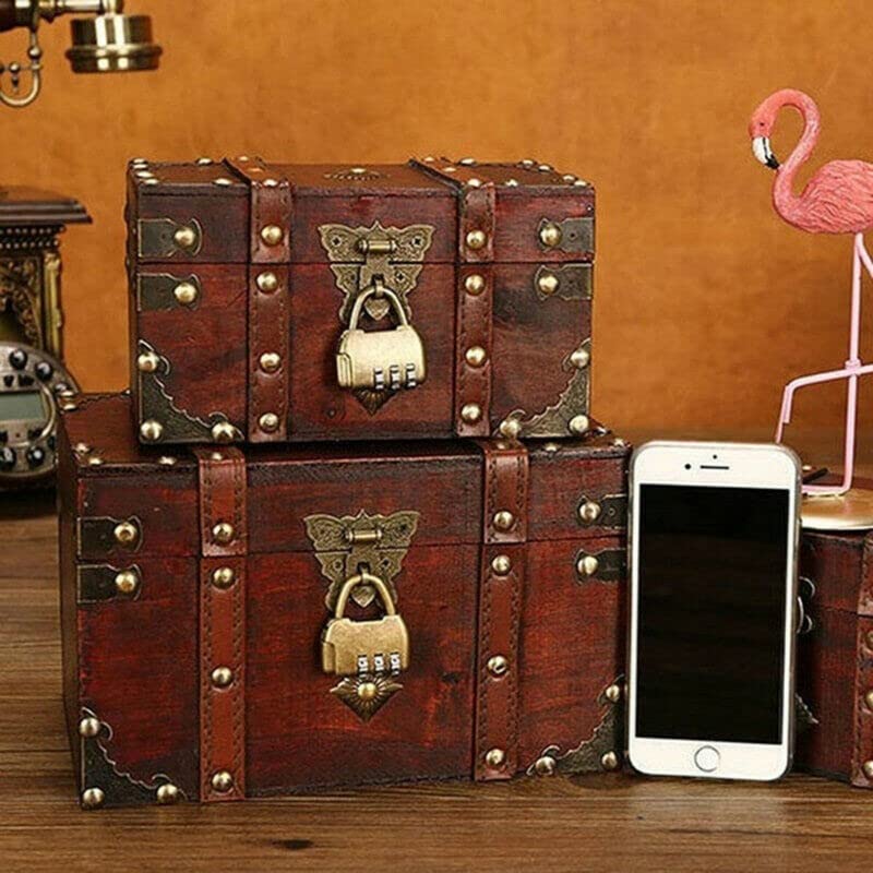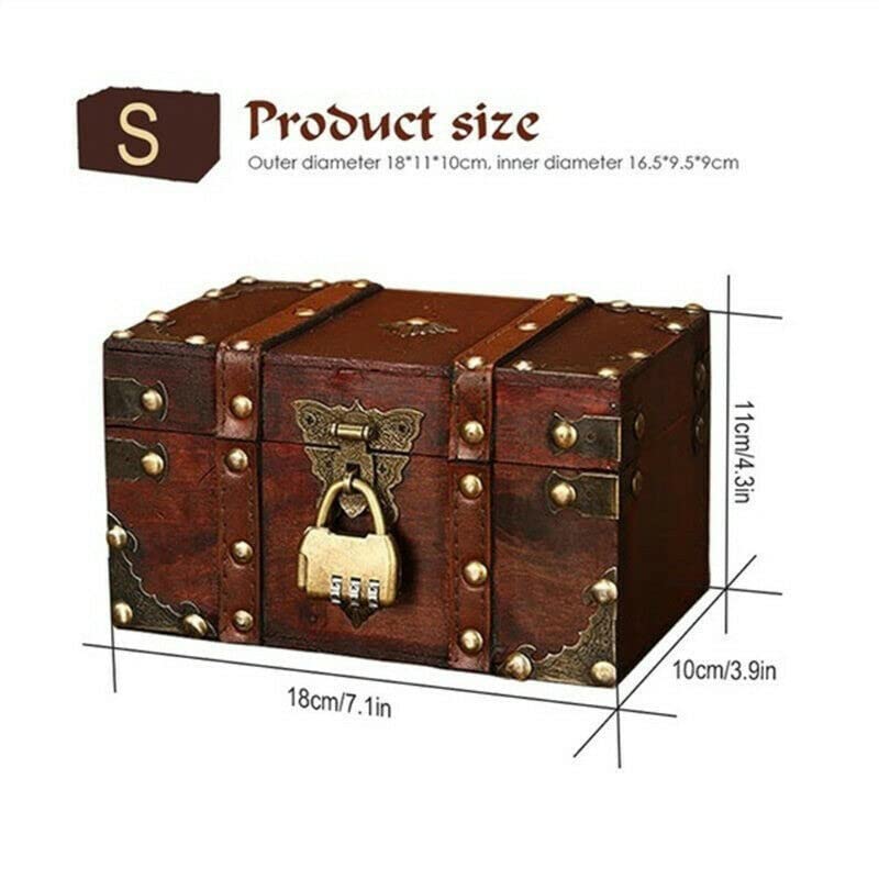 LIKEUDO Retro Jewelry Treasure Chest With Lock Vintage Wooden Trinket Storage Box (S (7.1x3.9x4.3in))
