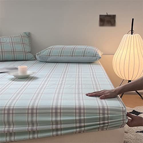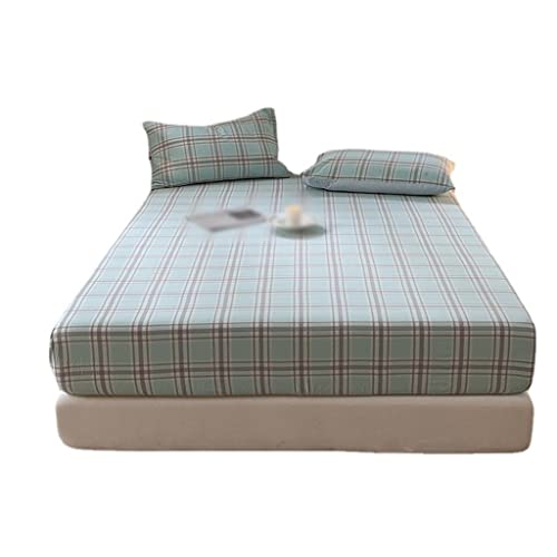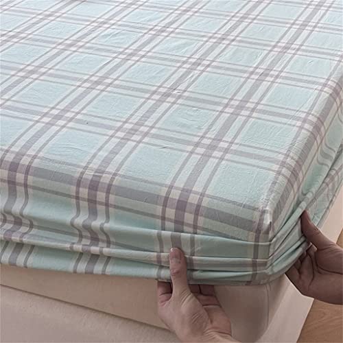 LIUZH Clip Cotton Bed Hat Single Piece Summer Style Bed Cover Mattress Protection Cover Bed Cover Green Plaid (Color : D, Size : 150 * 200CM)