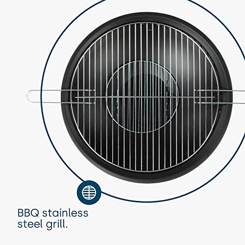 - SAFETY: The brazier has a secure-fitting removable lid with a fine mesh spark guard, allowing panoramic viewing of the flames and heat emission while keeping sparks, embers, and ashes in.