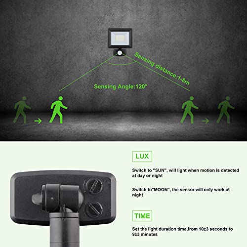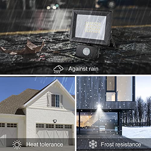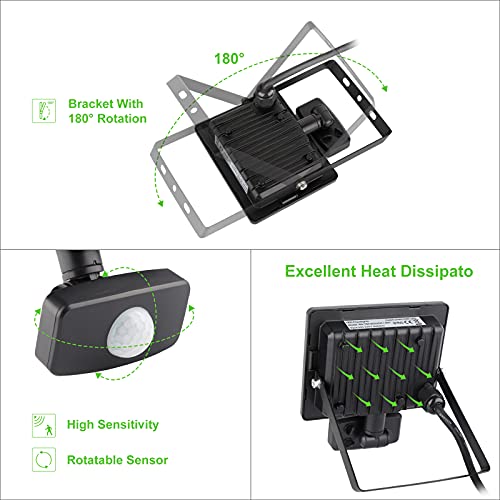 • 2.IP65 Waterproof: This led floodlight with pir is made of die-cast aluminum casing and tempered glass. IP65 waterproof rating allows this external sensor floodlights can still be used in rainy or snowy days, ideal for outdoor and indoor use, you can install it anywhere you need, like your corridors, gardens, yards, decks, fences and driveways, etc.