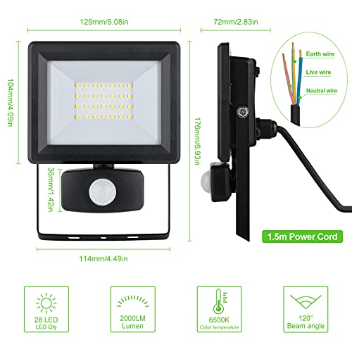 • 1. Super Bright & Energy Saving: This 20W security Lights' brightness up to 2000 lumens output and has a 120-degree wide beam spread. This led pir security lights outdoor gives a great field of light onto our driveway, front door, back garden, lobby and garage, etc. Save more than 85% in electricity cost.
