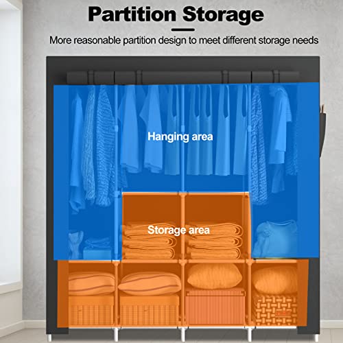 - 🛒Large Space Design🛒 The LOEFME canvas wardrobe is designed with a large size of 165*45*160cm, significantly increasing the storage space and allowing you to store more clothes.