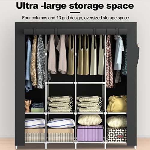 - 🛒Four Columns And Ten Compartments🛒 This fabric wardrobe has a four Columns and ten compartments internal structure, compatible with different storage needs, to meet your different storage needs.