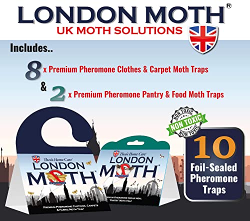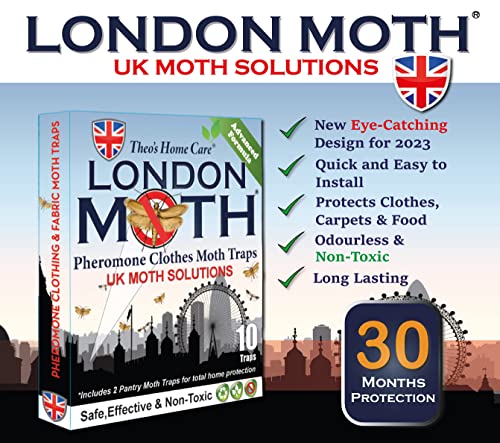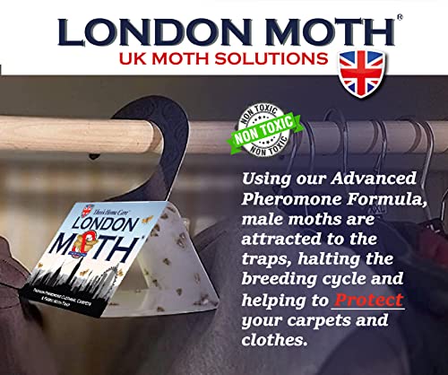 - ✅ LONDON MOTH Sticky carpet and clothes moth traps help to protect your rugs, carpets, storage and wardrobes against damage from future generations of marauding larvae. Crucially less noxious than borax powder, moth repellent spray, transfluthrin sachets for clothes storage. Each sticky moth killer lasts for 3 months and are non-toxic, odourless, and totally safe around inquisitive pets and children.
