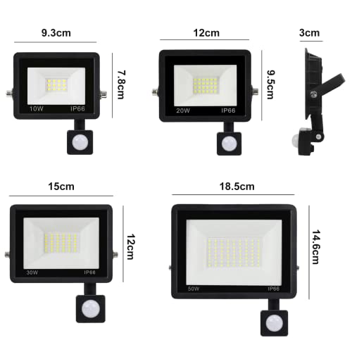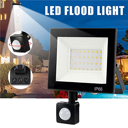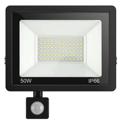 Home Garden & Outdoors LONENESSL 50W Motion Security Flood Lights, IP66 Waterproof 3000K LED Floodlight with PIR Sensor, Cold White Outside Wall Light with 120° Lightin