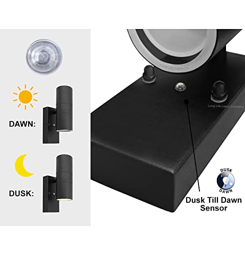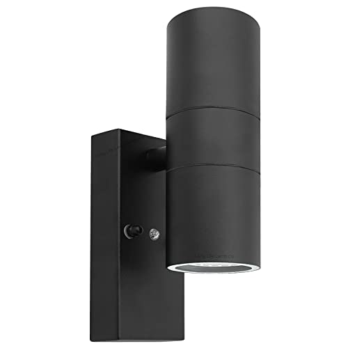 - Outdoor IP65 Up Down Dusk Till Dawn Sensor Wall Light In Stainless Steel Black Finish