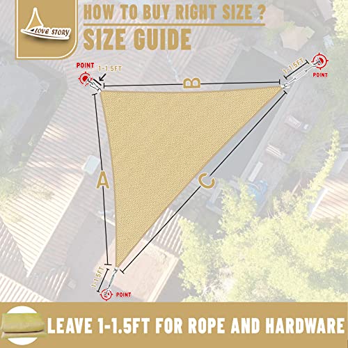 LOVE STORY 20' x 20' x 28.3' Sun Shade Sails Right Triangle Sun Sail Shade Cover Fabric for Patio Outdoor Garden Yard, Sand