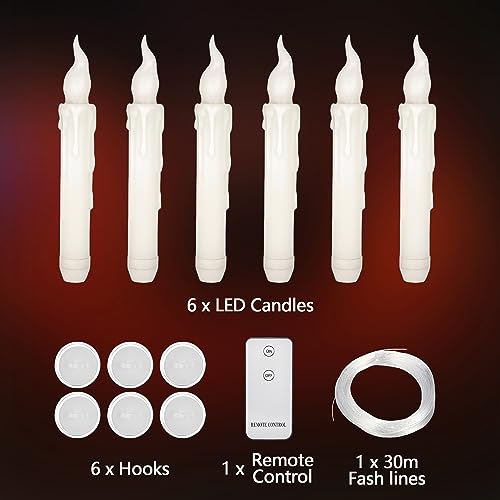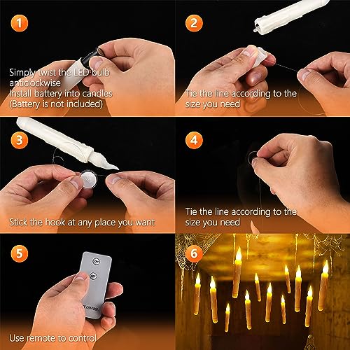 Lpraer 6X Floating LED Candles Flickering Flameless Hanging Light Remote Control Halloween Decoration for Birthday Wedding Christmas Party Bedroo